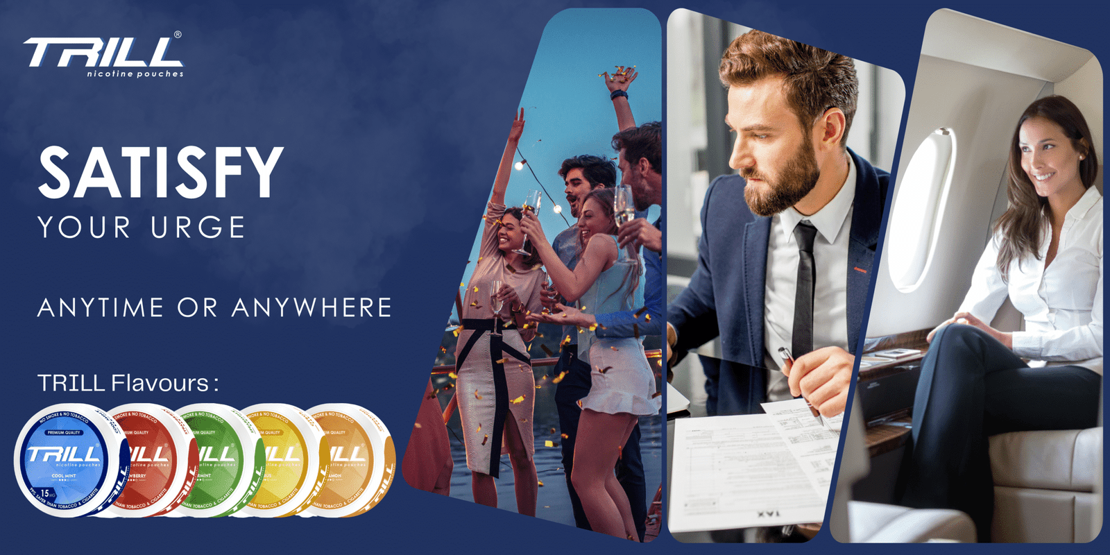 TRILL nicotine pouches are smoke-free, tobacco-free pouches designed to provide nicotine discreetly, without the need for smoking or vaping.